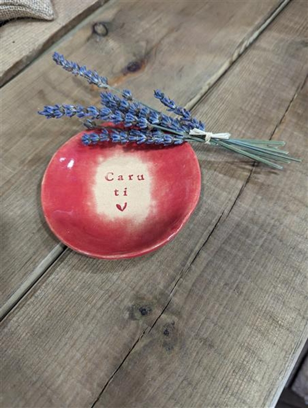 A lovely hand crafted ceramic trinket dish to say i love you. A perfect add to you specail flowers.